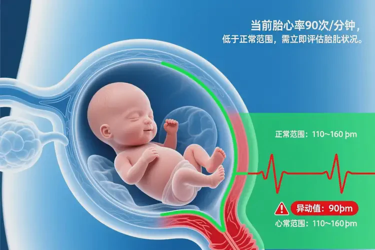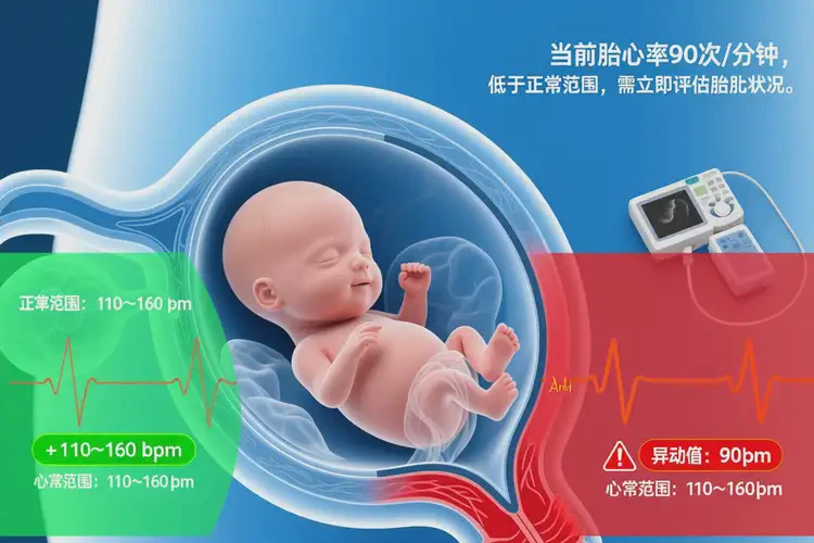 自孕早期胎心出現(xiàn)后,其速率隨孕周增長而變化。至孕中期(13–28周),胎心率穩(wěn)定在110–160次/分鐘之間。部分資料指出孕20周前平均值約為162次/分鐘,但個體存在波動。90多次/分鐘遠低于此標準,屬于胎心過緩(Fetal Bradycardia)范疇。胎心過緩的潛在病因分類
