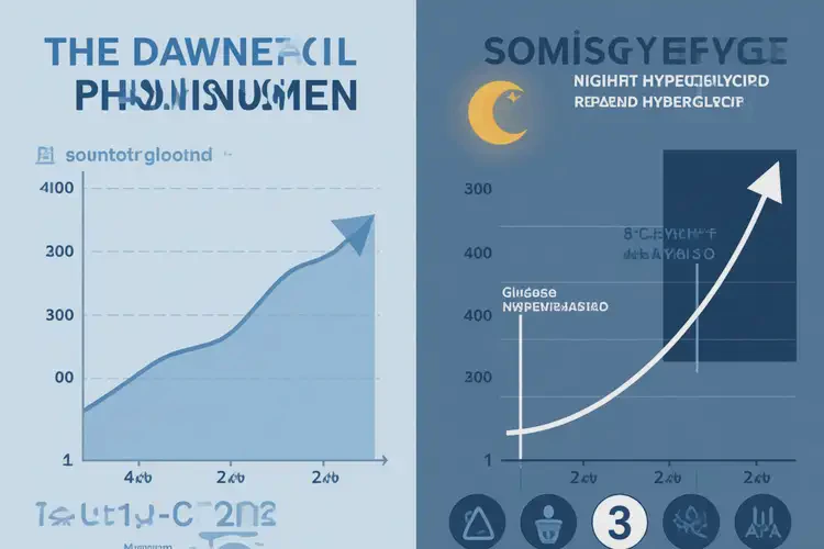 指夜間血糖控制尚可,但在凌晨3–8點(diǎn)因生長(zhǎng)激素、皮質(zhì)醇等升糖激素分泌增加,導(dǎo)致清晨血糖異常升高。若未調(diào)整長(zhǎng)效胰島素或藥物劑量,可出現(xiàn)16.7 mmol/L的極端值。蘇木杰效應(yīng)(Somogyi效應(yīng))