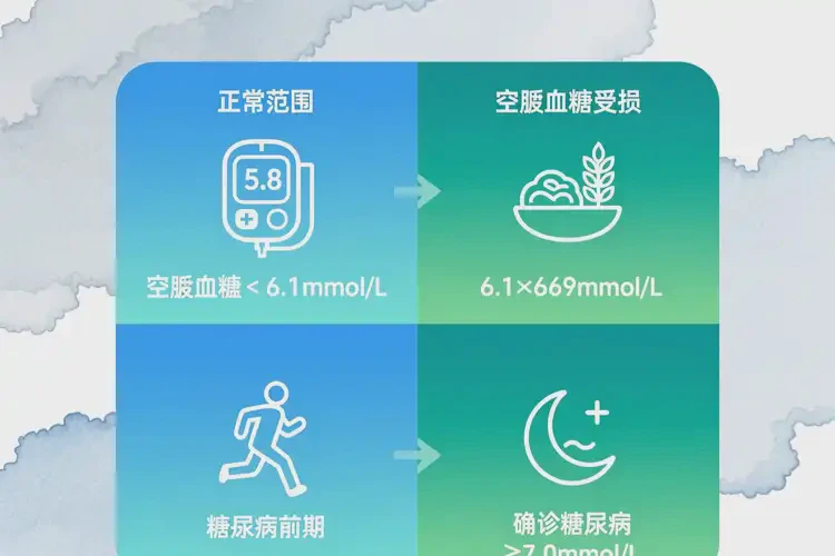 空腹血糖在6.1–6.9 mmol/L之間被定義為空腹血糖受損,是糖尿病前期的一種形式。此階段胰島β細胞功能開始減退,外周組織對胰島素反應下降,但尚未達到糖代謝失代償?shù)呐R界點。糖尿病診斷標準