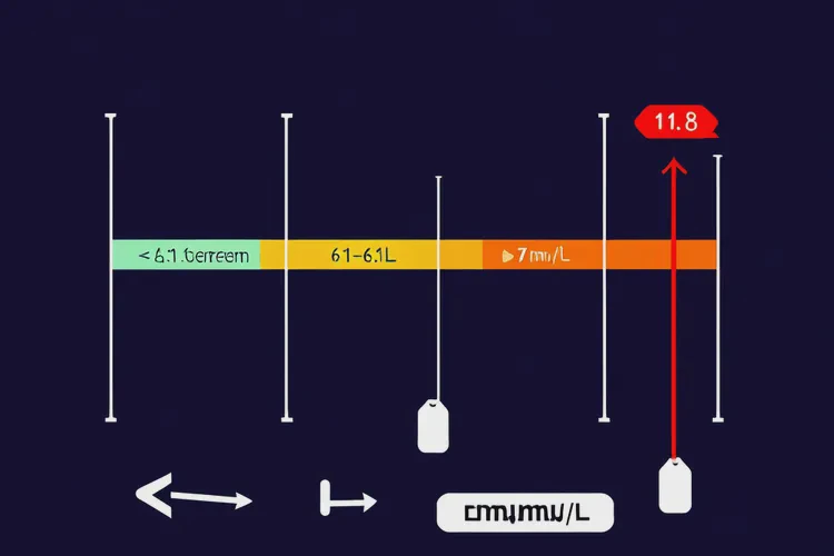 急性并發(fā)癥風(fēng)險 當(dāng)血糖持續(xù)高于13.9 mmol/L時,發(fā)生糖尿病酮癥酸中毒(DKA)的風(fēng)險顯著增加,這是一種可能危及生命的急癥,表現(xiàn)為惡心、嘔吐、腹痛、呼吸深快、意識模糊等。雖然11.8 mmol/L尚未達(dá)到極高危水平,但已構(gòu)成風(fēng)險基礎(chǔ)。