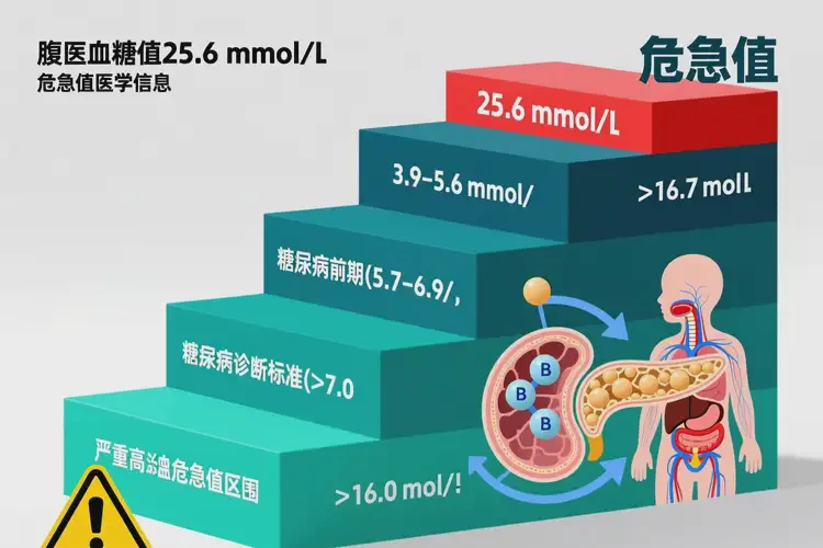 兒童空腹血糖正常范圍為3.9–6.1 mmol/L,當血糖高達25.6 mmol/L時,遠超糖尿病診斷標準(≥7.0 mmol/L),通常提示嚴重胰島素缺乏,伴隨酮體大量生成,極易引發(fā)糖尿病酮癥酸中毒——這是一種可危及生命的急性并發(fā)癥,需立即住院搶救。該數(shù)值在臨床上多見于新發(fā)1型糖尿病患兒,常因多飲、多尿、體重下降等癥狀被忽視或誤診為“腸胃炎”而延誤治療。