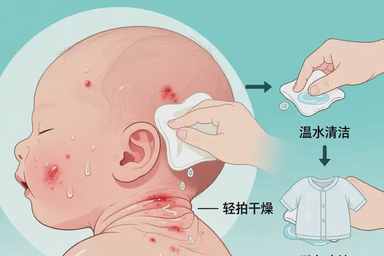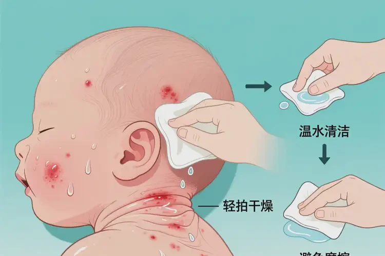 - 清潔干燥:每次哺乳或流汗后,用軟布蘸干頸部褶皺,避免殘留口水或汗液。