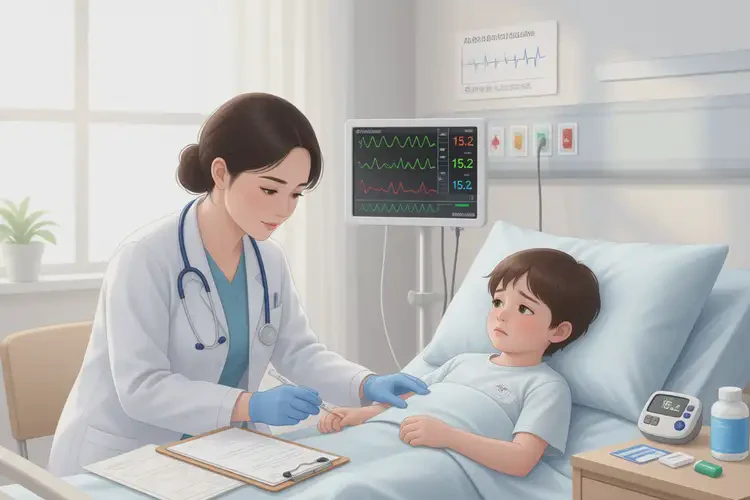 15.2 mmol/L 的數(shù)值是急診指征。家長應(yīng)立即帶孩子前往最近的兒科急診或兒童內(nèi)分泌科。切勿嘗試通過“多喝水”、“少吃糖”來“自己解決”。此時,血糖儀的讀數(shù)是生命體征,需要的是靜脈輸液和胰島素的精準治療,以迅速糾正脫水、酸中毒和高血糖。