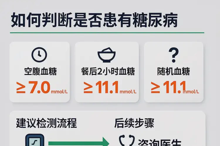 | 空腹血糖(至少空腹8小時(shí)) | ≥7.0 mmol/L | 已達(dá)糖尿病診斷閾值;無典型癥狀需另一天重復(fù)確認(rèn) | 次日再測(cè)空腹血糖或行OGTT/HbA1c |