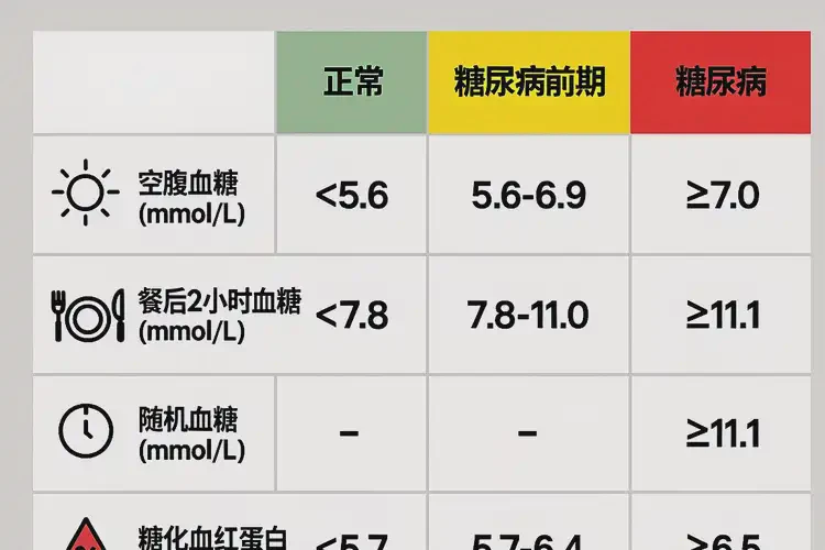 | 餐后2小時(shí)血糖(從第一口開始計(jì)時(shí)) | ≥11.1 mmol/L | 伴典型癥狀可診斷糖尿??;不伴癥狀需復(fù)測(cè)或結(jié)合其他指標(biāo) | 規(guī)范復(fù)測(cè)2小時(shí)血糖,必要時(shí)做OGTT |