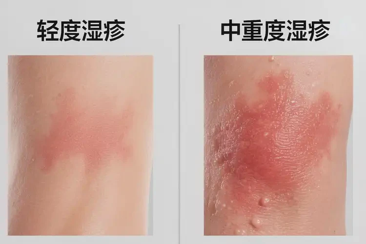 | ?中度、多部位 | 較小 | 紅斑、丘疹增多,可見(jiàn)滲出/結(jié)痂 | 及早就診;在醫(yī)生指導(dǎo)下外用糖皮質(zhì)激素或鈣調(diào)磷酸酶抑制劑,必要時(shí)口服抗組胺止癢 |