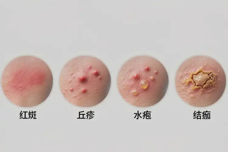 - 典型表現(xiàn)為紅斑、丘疹、水皰、糜爛、滲出、結(jié)痂與劇烈瘙癢,可因抓撓而加重。
